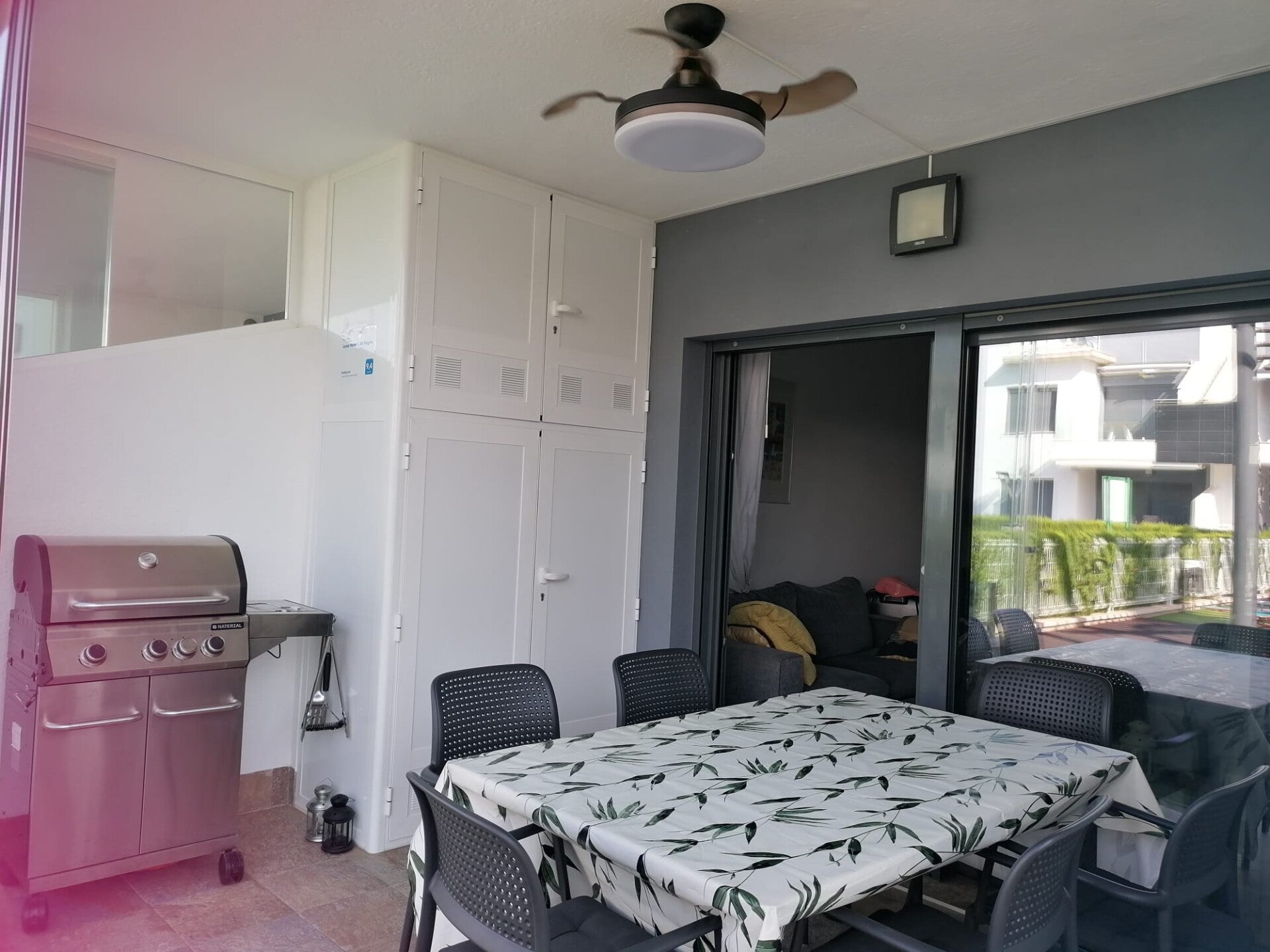 - TERRAS: eettafel, stoelen, ligbedden, parasol, BBQ
